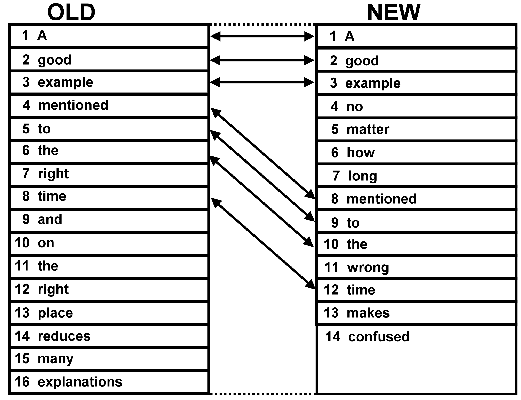 | Bild 1. Die Dateien OLD und NEW. Gleiche Zeilen sind verbunden. |