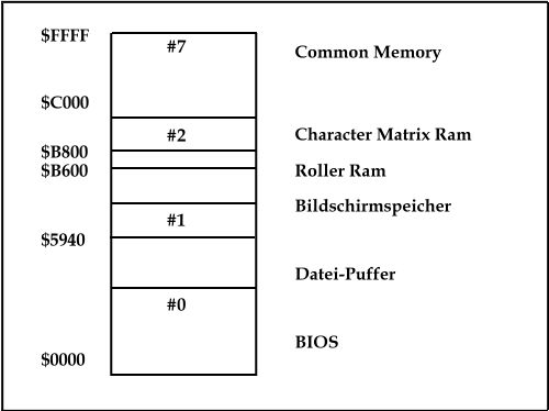 Diese vier Blöcke werden vom BIOS des CP/M-Systemprogramms so konfiguriert, daß jeweils folgende Blöcke zusammengeschaltet sind:
