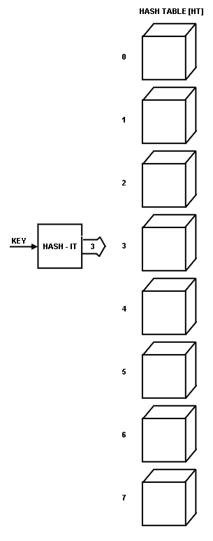 In using HASH-IT, each HASH-VALUE produced points into an array called the HASH TABLE (HT).