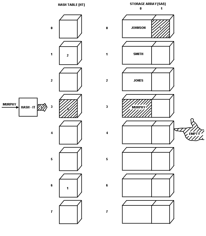 MURPHY was stored at the next location in the STORAGE ARRAY pointed to by EMPTY.