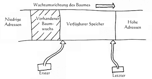 Immer wenn unser Baum ein Byte zum Wachsen benötigt, kann er das Byte, auf das FIRST zeigt, aufgreifen und dann FIRST erhöhen.