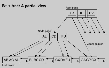 Growth of the B+ + tree is very similar to that of the B+ tree, with some differences, such as additional zoom pointers in node pages.