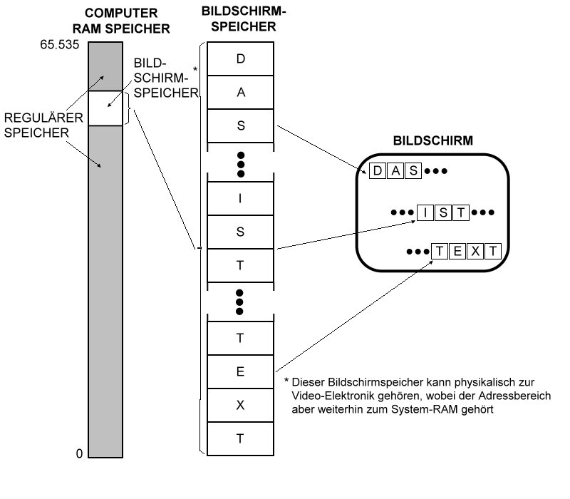 Eine Methode war, einen Teil des CPU-Speichers als Bildschirmspeicher zu verwenden.